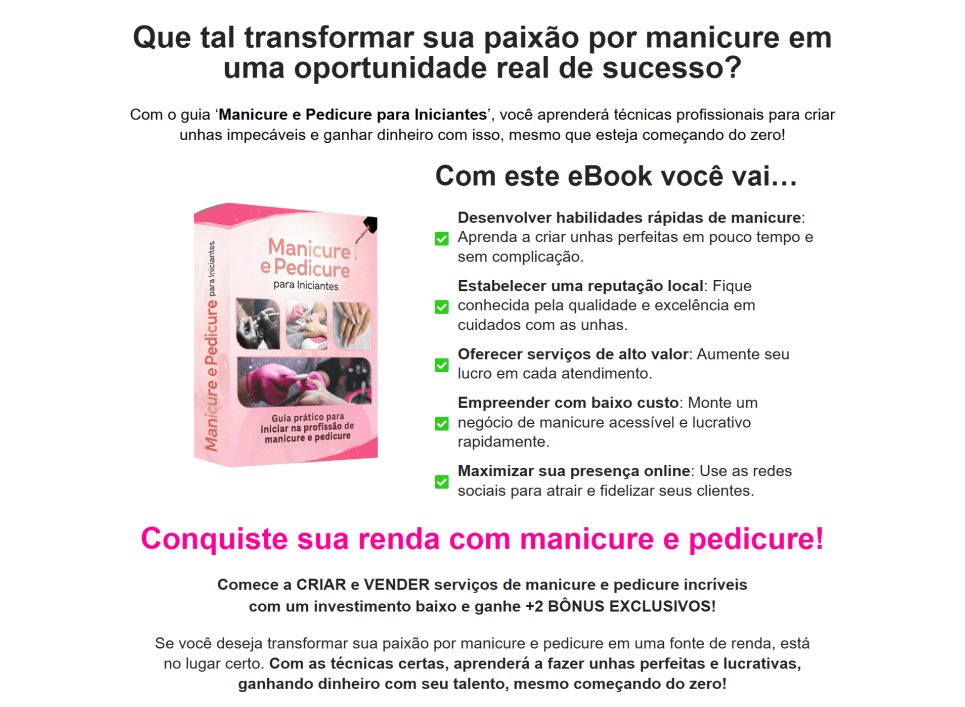 Explica, passo a passo, como fazer unhas perfeitas, conquistar clientes fiéis e criar um negócio estável e lucrativo.