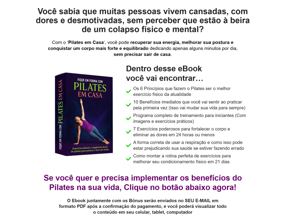 Você vai descobrir por que o PLR Fique em Forma com Pilates em Casa é o caminho mais rápido para lucrar no nicho de saúde e fitness, sem precisar criar nada do zero…