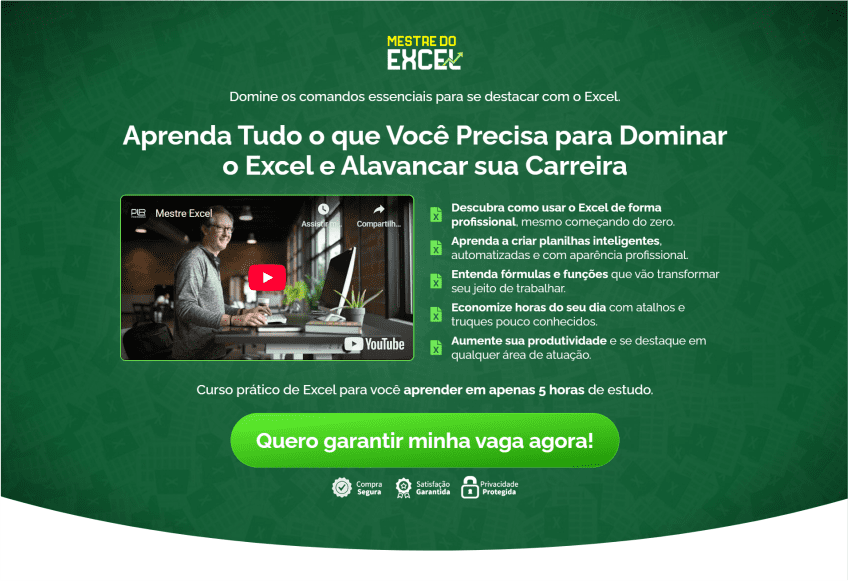 O curso “Mestre do Excel” é uma solução prática e completa para quem deseja dominar uma das ferramentas mais exigidas pelo mercado e se destacar em qualquer área profissional.