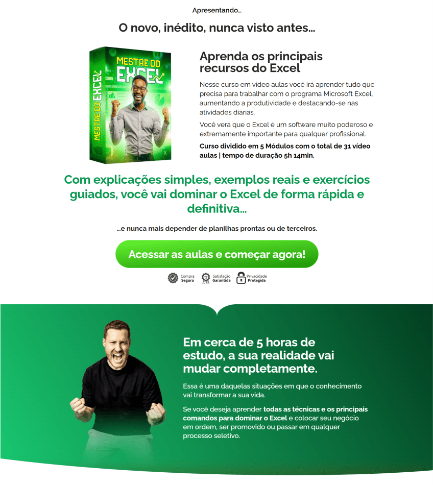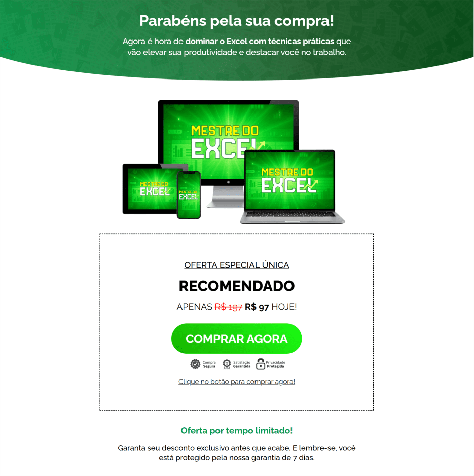 Se ainda não tiver outro produto pronto, basta escolher um em nosso site que complemente o curso Mestre do Excel e promover aqui.